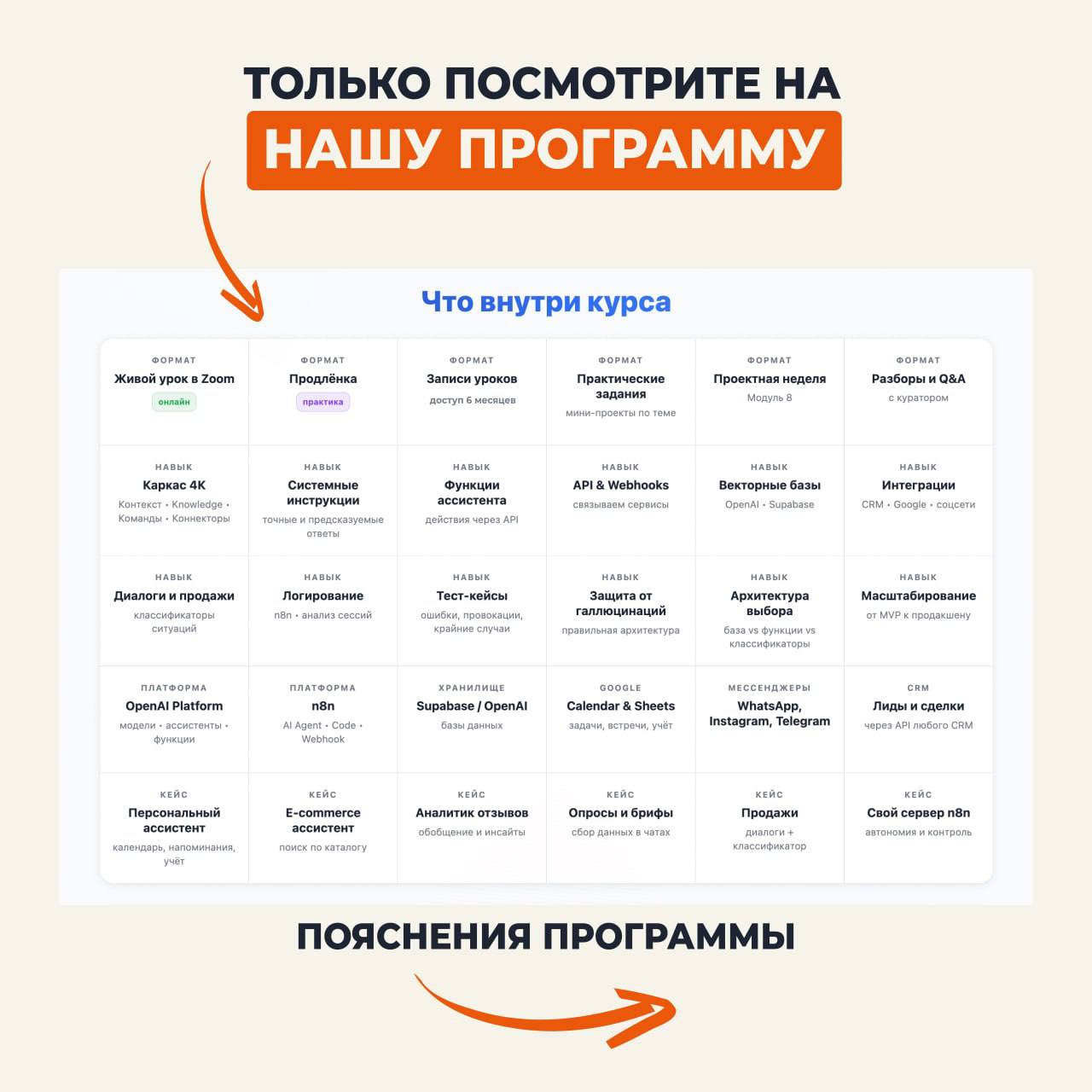 - 🎟 уроки в записи и 10 живых уроков со специалистами. Мы предлагаем гибкий формат обучения, который позволит вам учиться в удобное для вас время. Записи уроков будут доступны в личном кабинете, а живые уроки со специалистами – это возможность задать вопросы, получить обратную связь и обсудить сложные моменты в режиме реального времени. Живые уроки будут посвящены разбору конкретных кейсов, демонстрации работы инструментов и ответам на вопросы студентов.